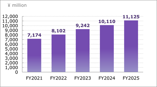 ・In the engineer dispatching business, due to an increasing number of engineers and the utilization rate remaining high, the number of operative personnel surpassed that of the previous year. In addition, the trend of engineer shortage and wage increases by companies pushed up the unit price for newly graduated engineers at their first assignments, and current engineers were rotated between clients to improve engineers’ work level. In turn, the unit price of engineers surpassed that of the previous year. In the contracting business, aggressive sales activities have led to an increasing number of engineers assigned to contracted projects. Furthermore, we shifted from engineer dispatching to contracting projects in response to client needs. In turn, the ratio of the contracting business to net sales became 11.6%. As a result of all this, net sales increased 10.0% year on year to ¥11,125 million.