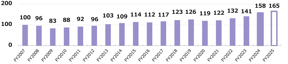 Calculations were made by using the data of FY2007 as 100 (baseline).