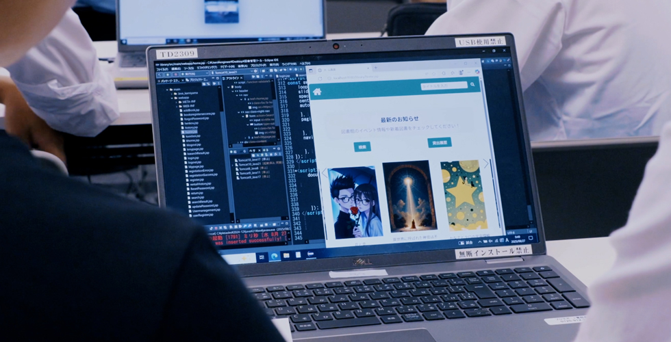 蔵書の検索や貸出履歴などができるツールを一から設計します。WebアプリケーションにおけるプログラミングやデータベースといったITの基本技術を学べることはもちろん、課題や問題を解決する力を養えます。身近な存在であるオンラインショップなどで触れることの多いWebアプリケーションの仕組みを、自分の手で実装する貴重な体験ができます。
